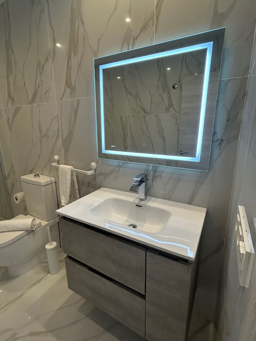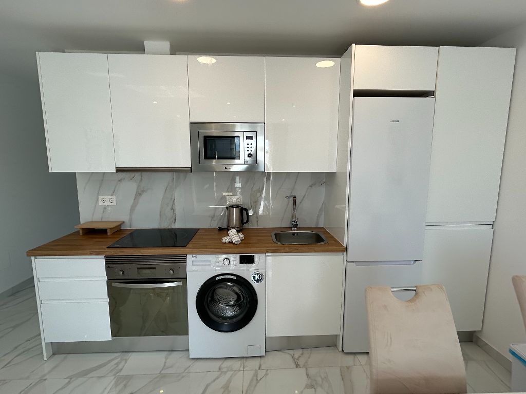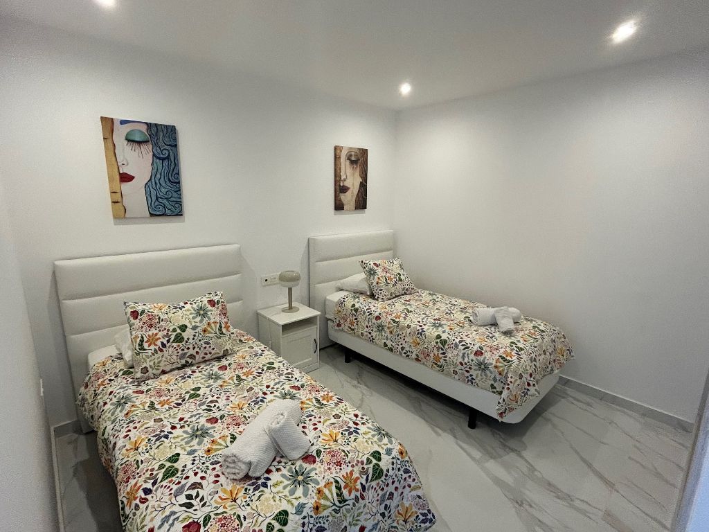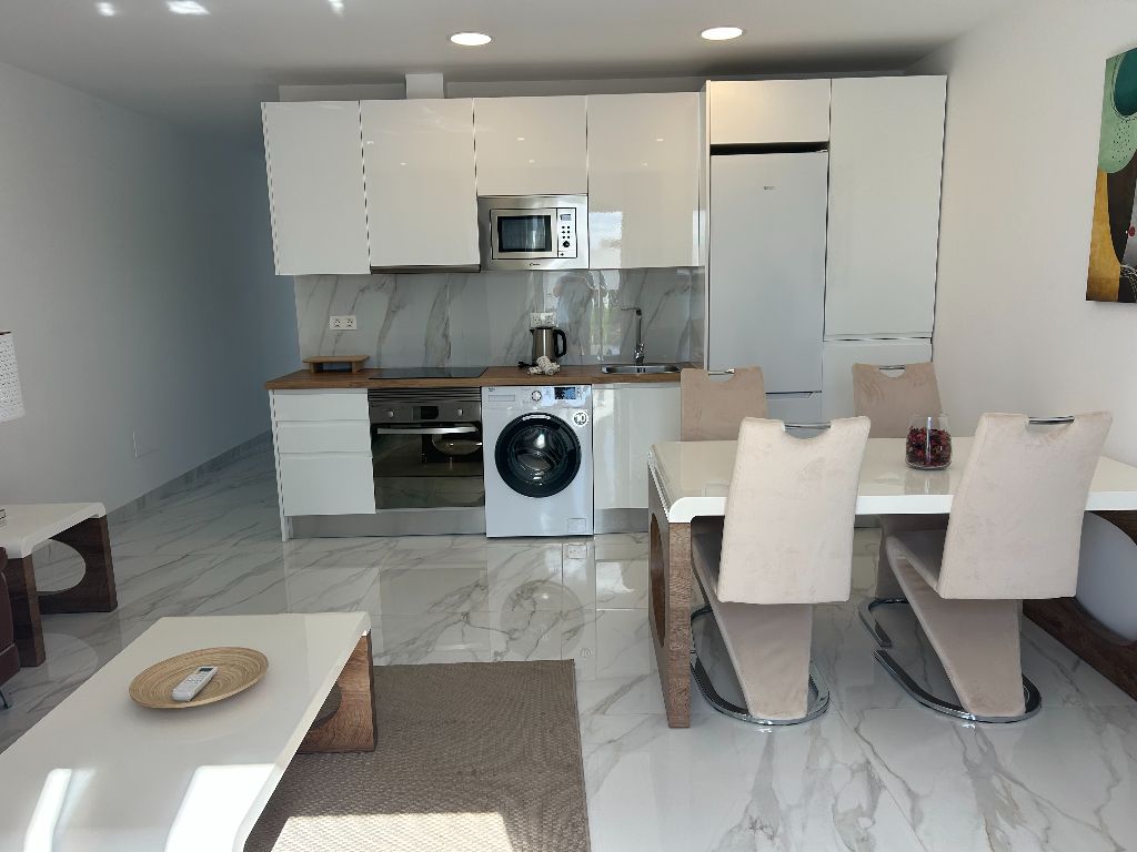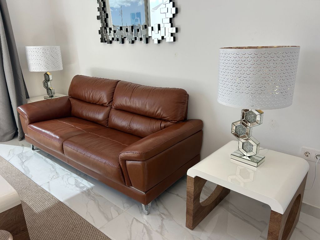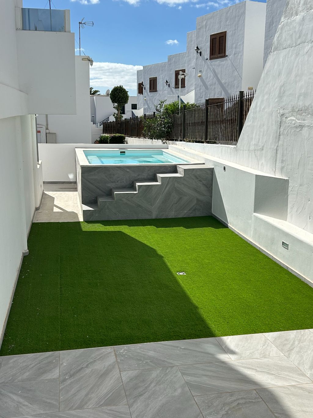 New to holiday rentals this 2 bedroom apartment has been fully refurbished to a very high standard and is centrally located within Puerto del Carmen, also within walking distance of the old town and harbour. Its enviable position means you are only 5 minutes walk to the the beach and promenade, on a peaceful and secure complex with pool. The spectacular contemporary lounge includes comfy sofa, flatscreen TV with British channels inc. BBC,ITV, RTE, SKY Sports, Movies, free WiFi and video club with up to date movies.The sunny balcony has 2 sunbeds for you to enjoy the long days in the sun and is equipped with dining furniture for alfresco dining. The fully equipped kitchen benefits from washing machine, large oven, large fridgefreezer and microwave. The stunning refurbished bathroom has a walk in shower, towels are provided. The bedroom has a double bed with quality mattresses and bedding and a twin bedroom with built in wardrobes. Air con is in the apartment paid via a coin meter This apartment provides a high specification finish for all your holiday requirements and comforts. A perfect location for all ages.